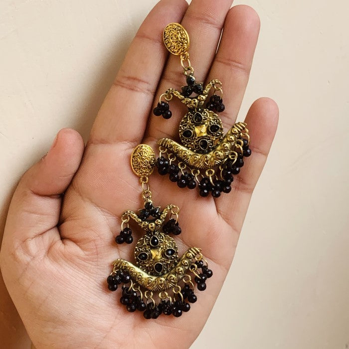 Golden Oxidized Black Bead Earring
