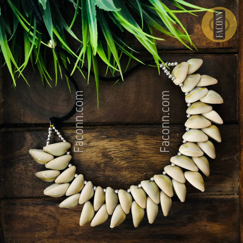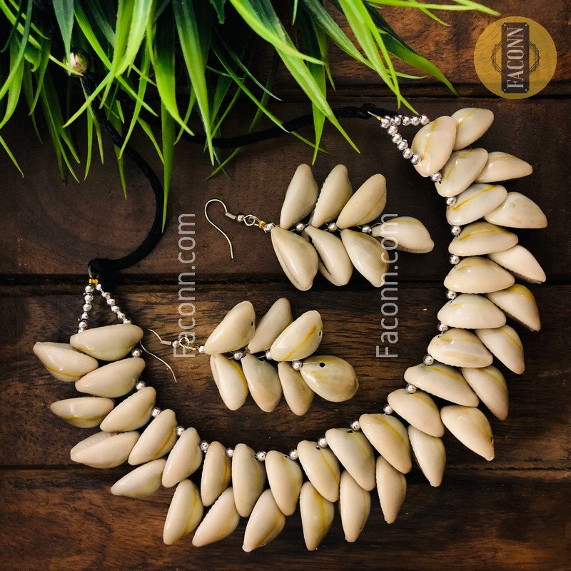 LARQ JEWELS Afghani Shell Beads Silver Choker with Earrings