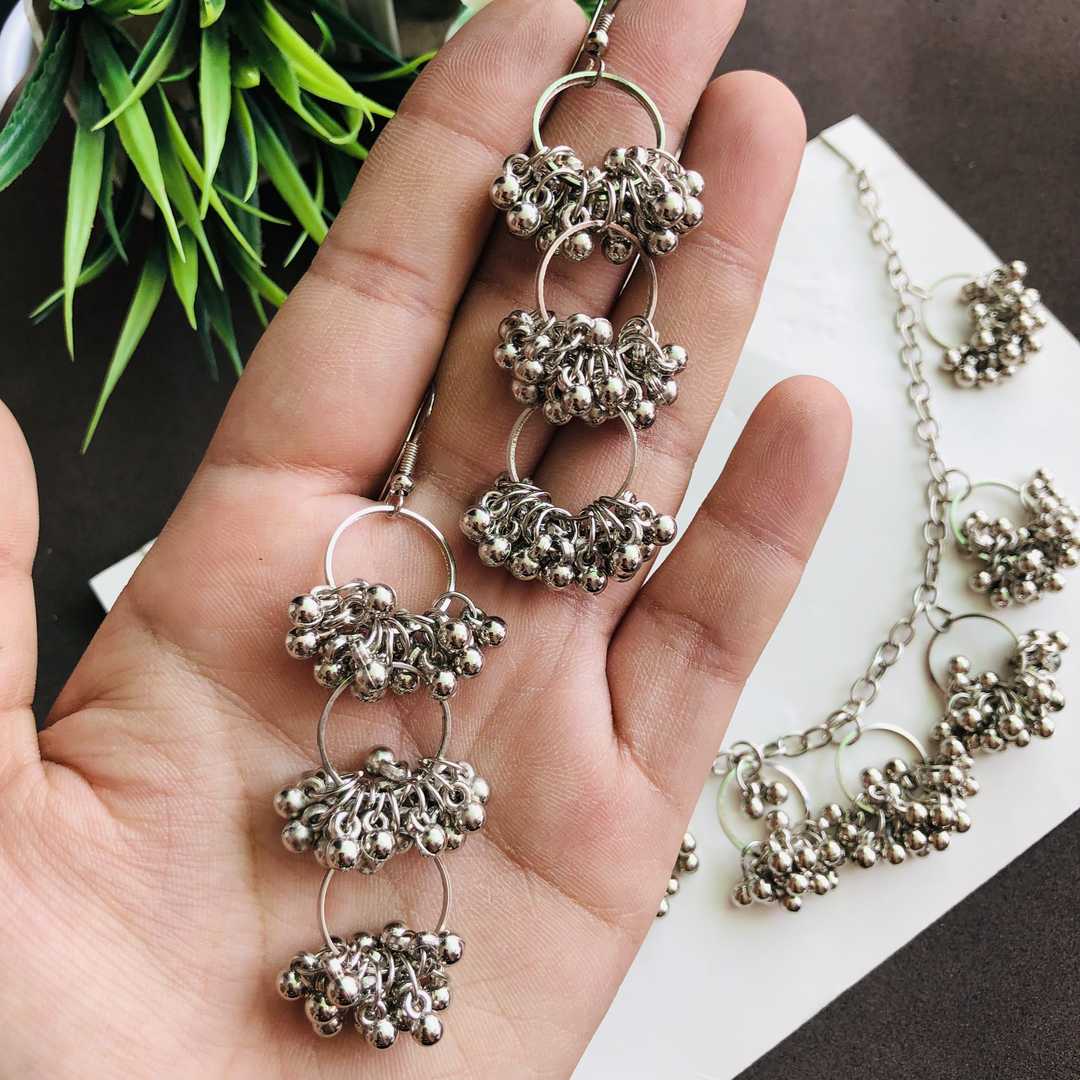 LARQ JEWELS Afghani Oxidised Ghungru Choker Necklace with Earrings