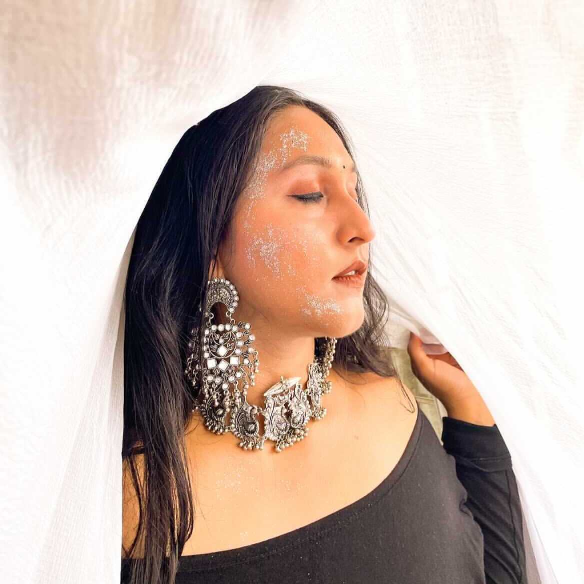 Larq Jewels Vintage Oxidised Silver Choker Necklace Set
