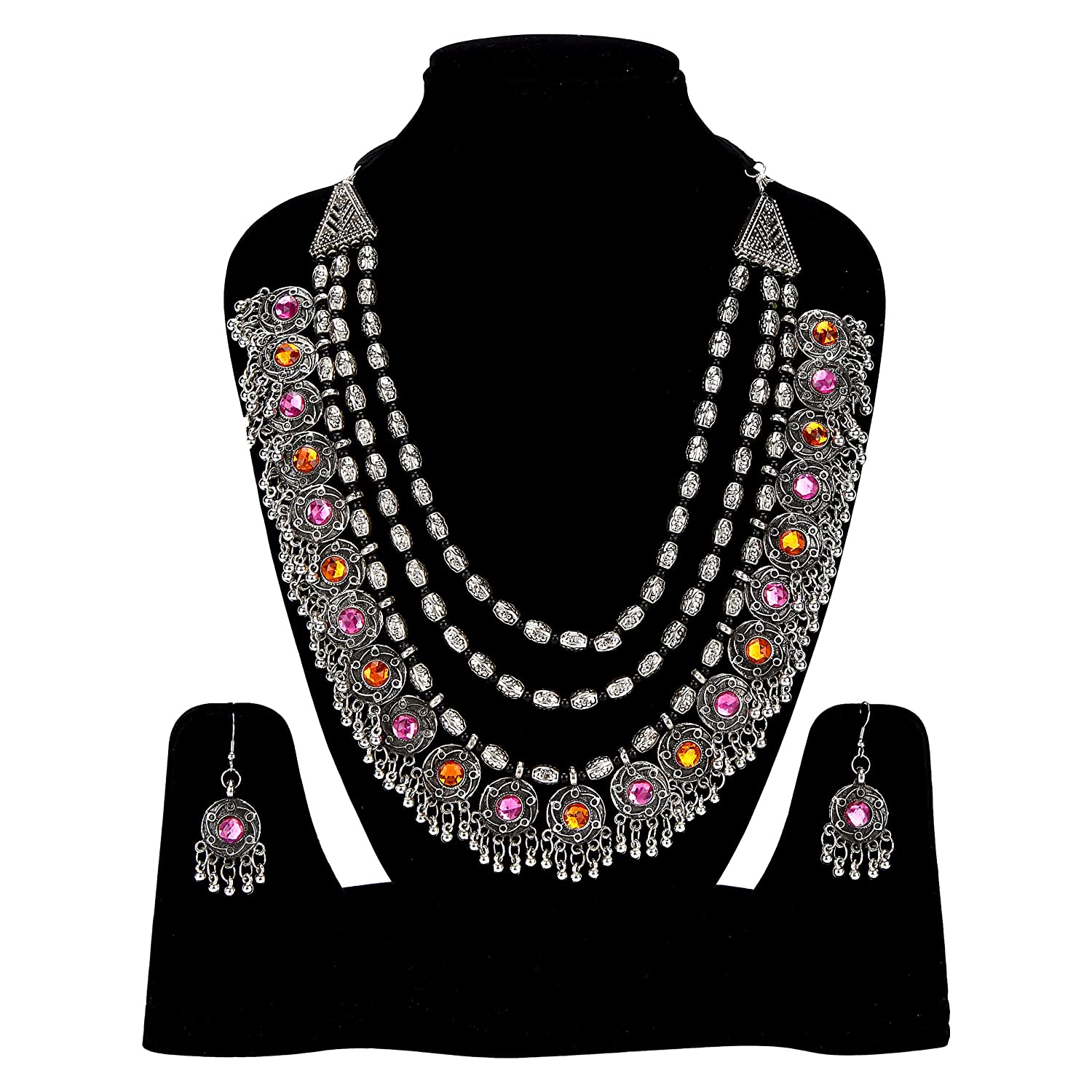 LARQ JEWELS Antique Oxidised Silver Plated Tribal Jewellery Necklace