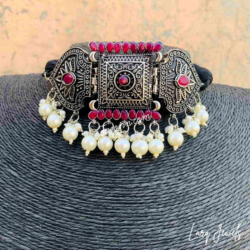 LARQ JEWELS Antique Silver Stone Handcrafted Necklace Set