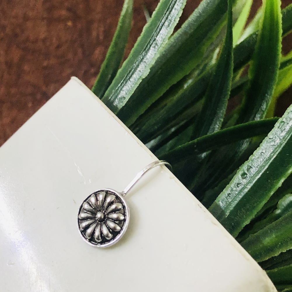 Larq Jewels Circular Shape Silver Antique Clip-on Nosepin for Women