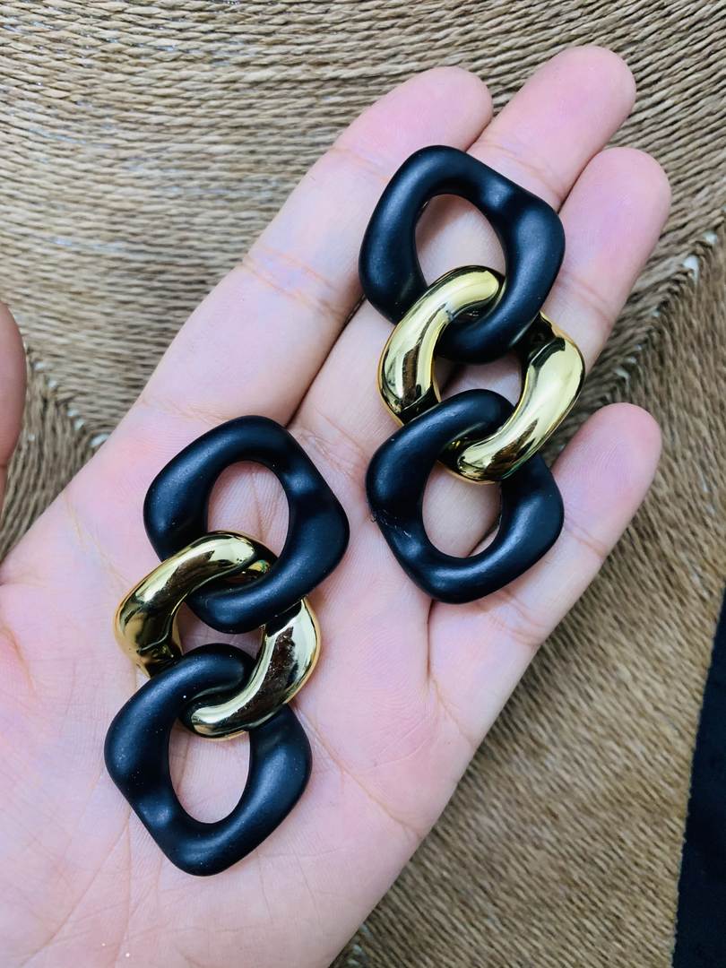 LARQ JEWELS Geometric Oval Black Golden Hollow out Long Chain Drop For Women And Girls Earrings