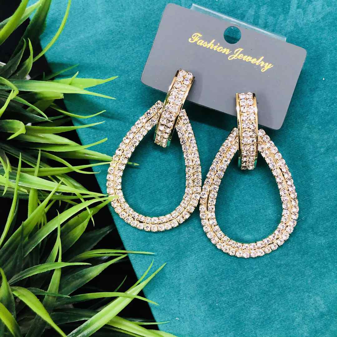 LARQ JEWELS Geometrical Design zirconia Crystal Gold Plated Sparkling Colorful Pair of Earrings