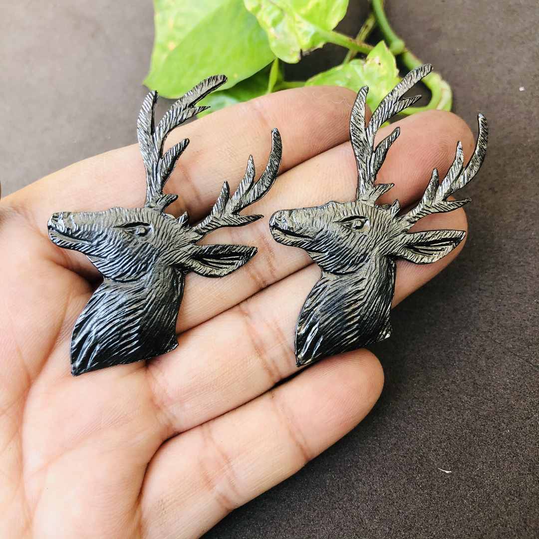 LARQ JEWELS German Silver Antique Deer Face Stud Earring for women