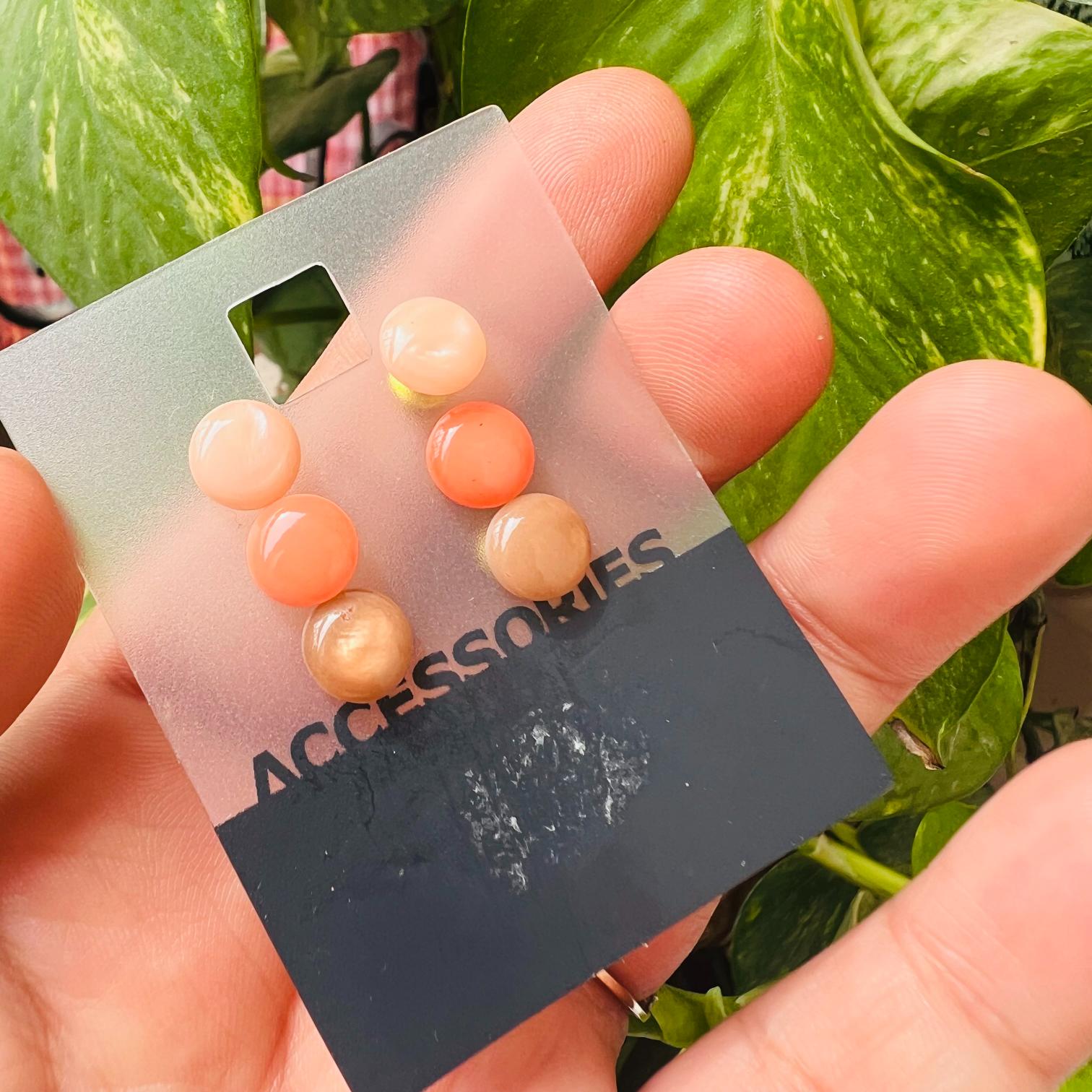 LARQ JEWELS 3 pair Button Shape Cool Stud Earrings