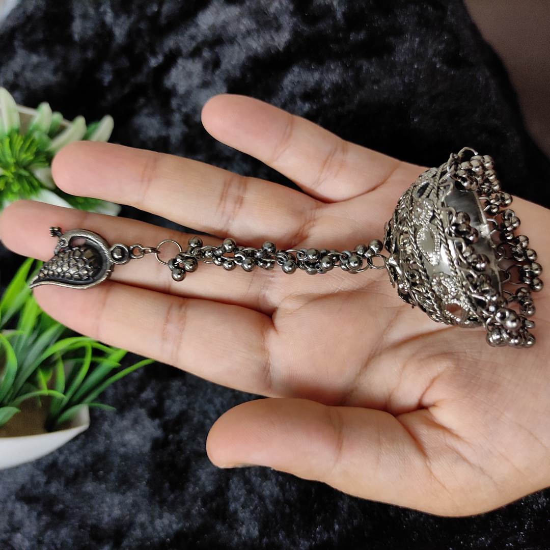 LARQ JEWELS Long Chain German Silver Earrings Jhumka Jhumki Oxidised Silver Plated Earrings For Girls Women