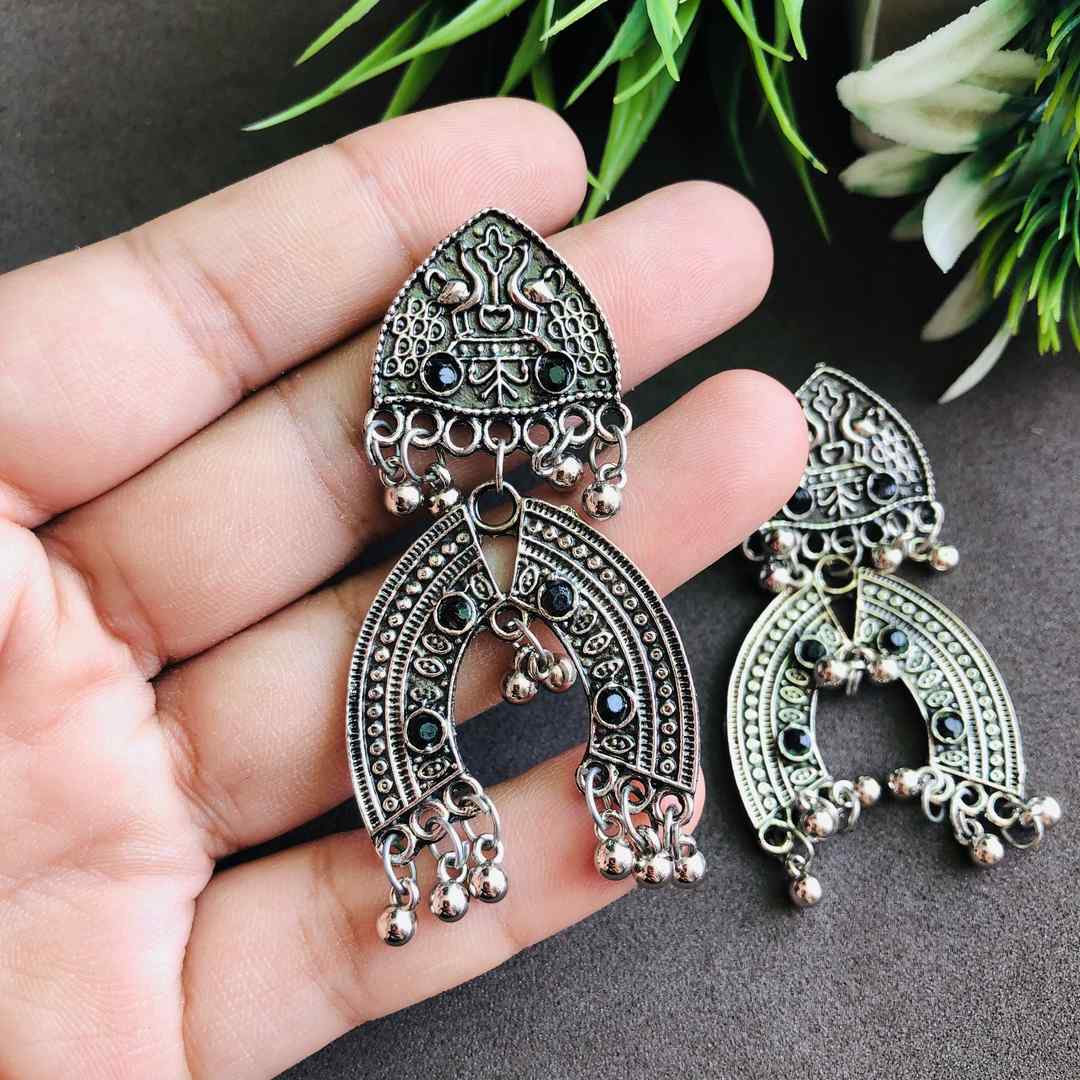 LARQ JEWELS Mandala Embellished black stone Drop Earrings