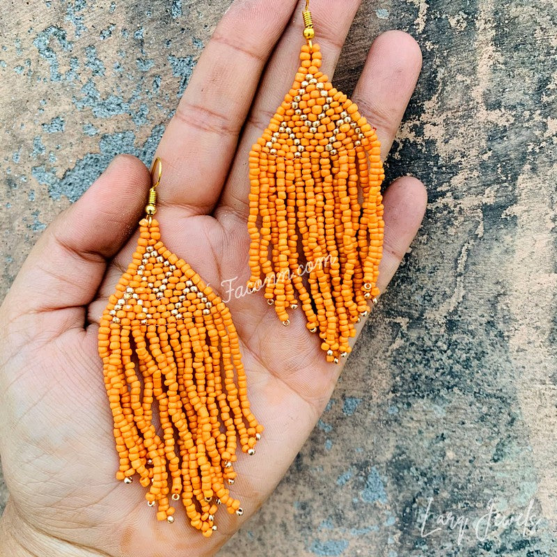 Larq Jewels Orange Seed Beaded Earrings for Women Girls