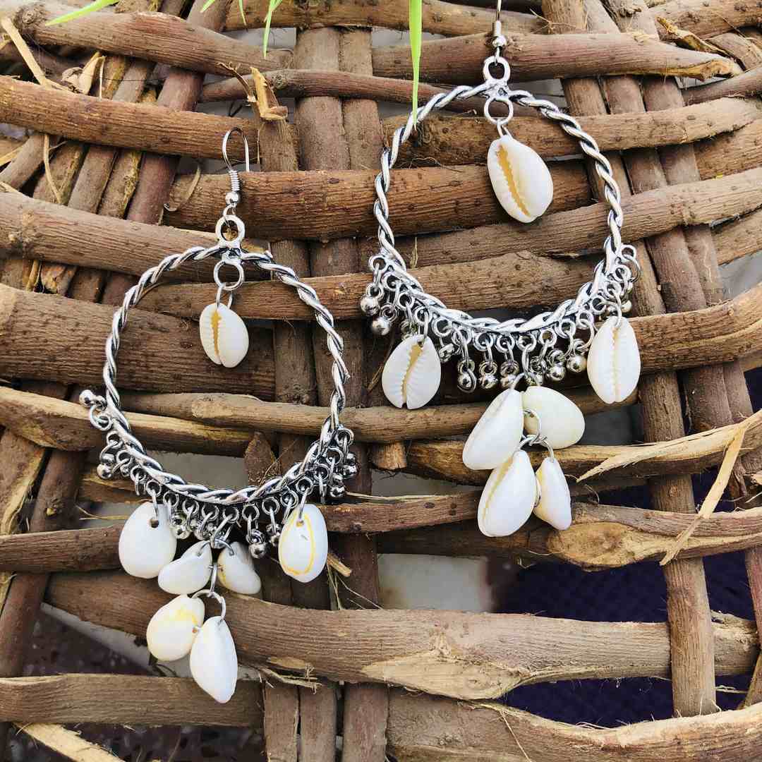 LARQ JEWELS Original Cowrie Shell Kodi Handmade Unique Silver Boho Hoop Earrings for Girls and Women
