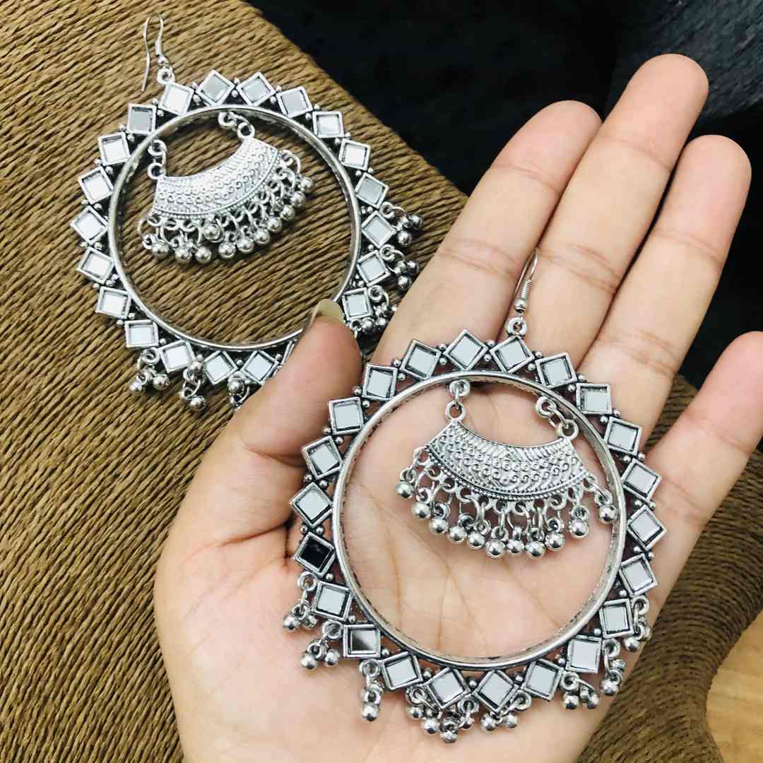 LARQ JEWELS Oxidised Silver Afghani Big Chanbali jhumka Earrings for women and girls