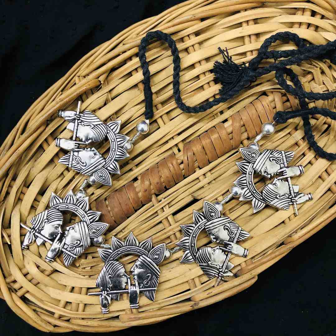 LARQ JEWELS German Silver Afghani Radha Krishna Temple Choker
