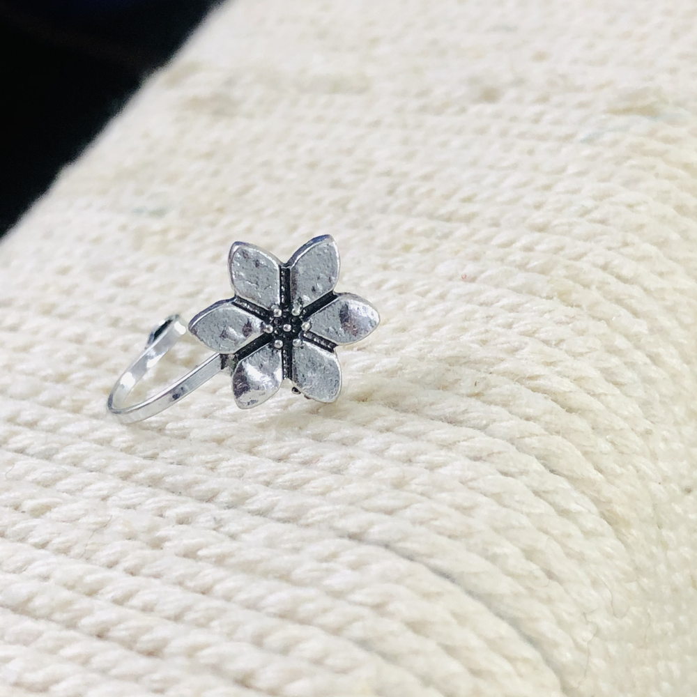 Larq Jewels Oxidised Silver-Toned Tribal Round Shape Clip-On Nosepin
