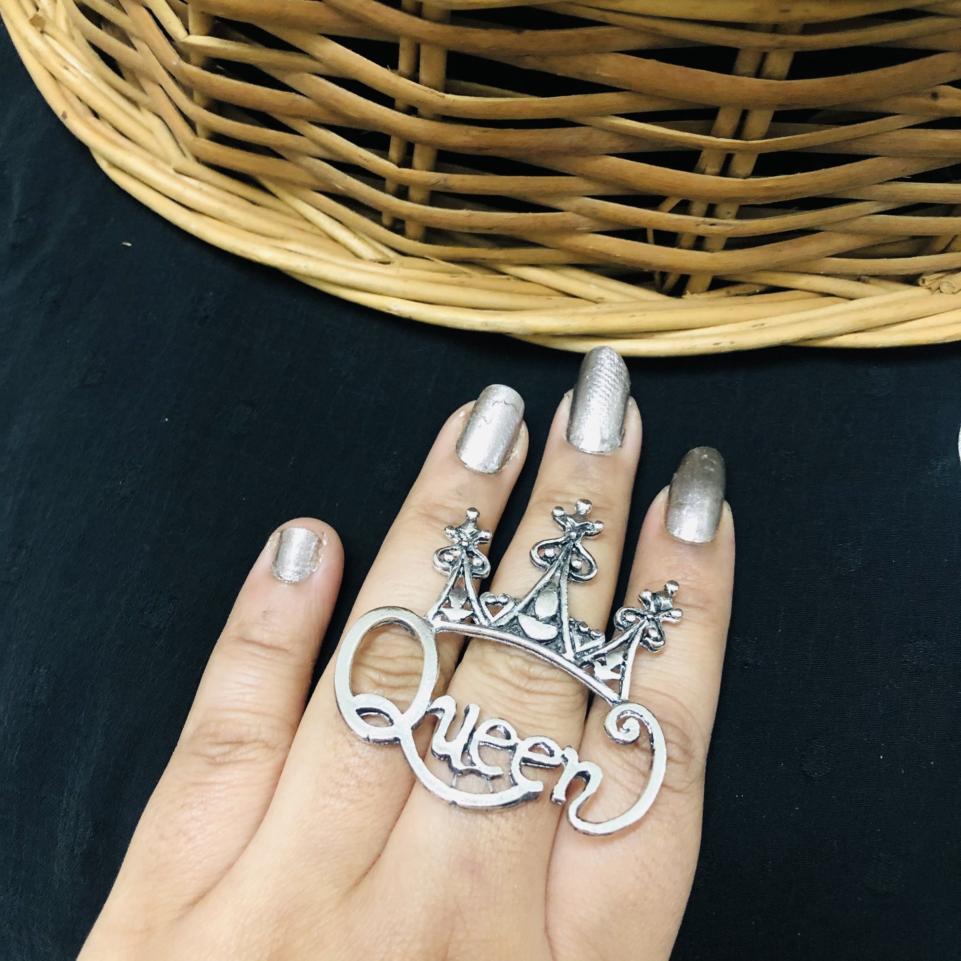LARQ JEWELS Oxidised Stud Queen Earrings Silver Plated Combo