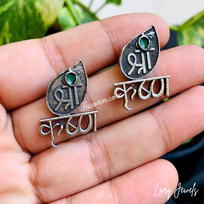 LARQ JEWELS Oxidized Silver Afghani Radha Krishna Temple Necklace