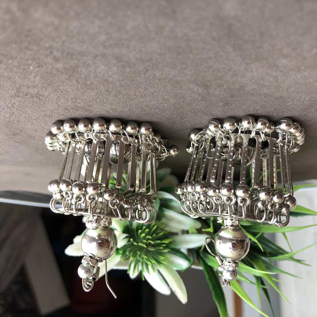LARQ JEWELS Oxidized Silver Tribal Dangle Earrings