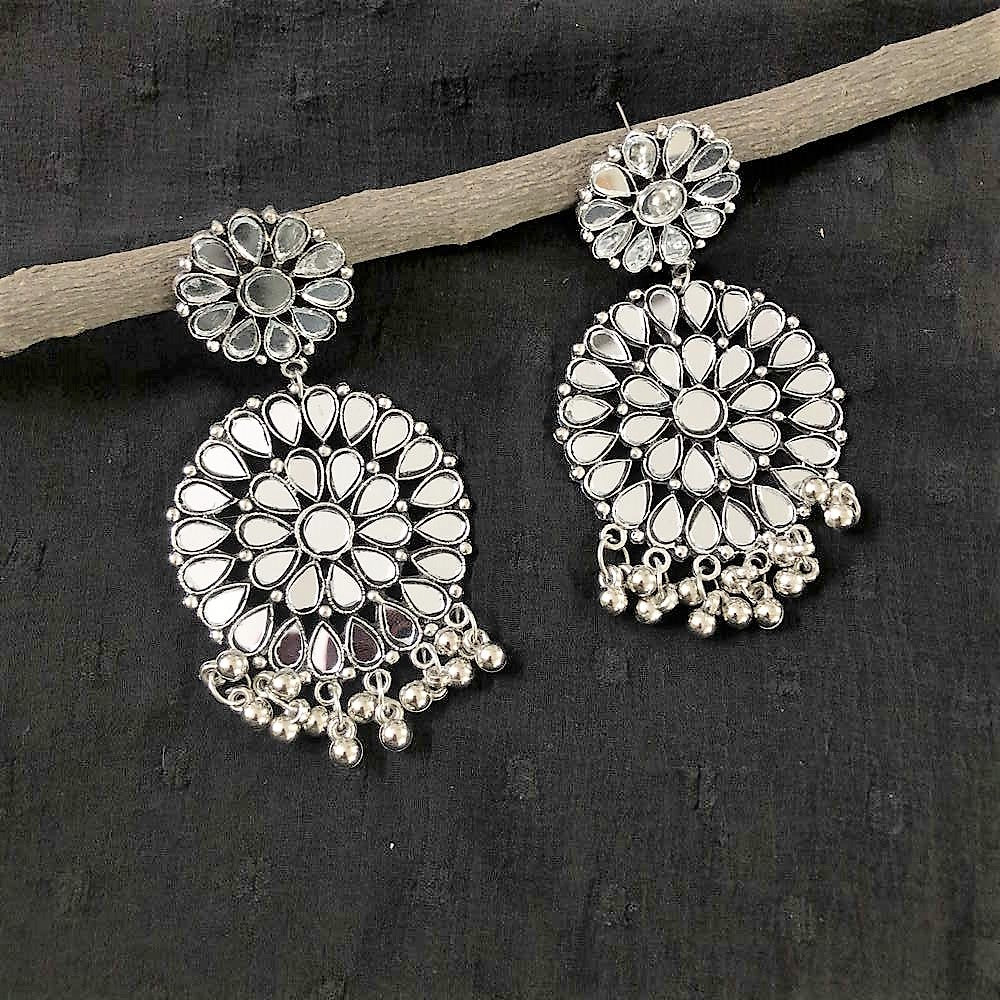 Larq Jewels Premium Silver Plated Handcrafted Afghani Designer Indian Ethnic Mirror Earrings