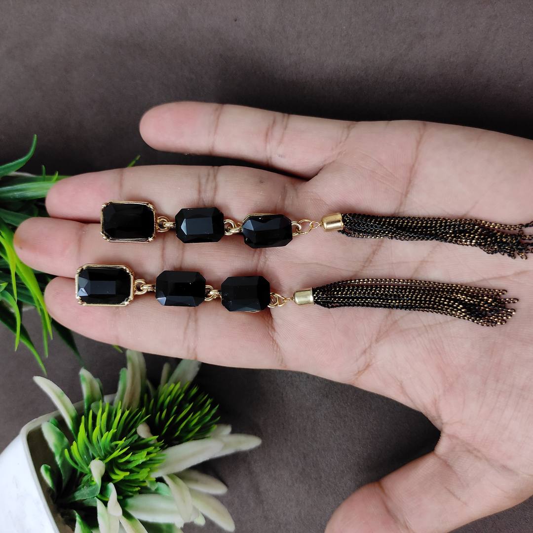LARQ JEWELS Sparkling Black Crystals Fashion Forward Tassel Earring For Women