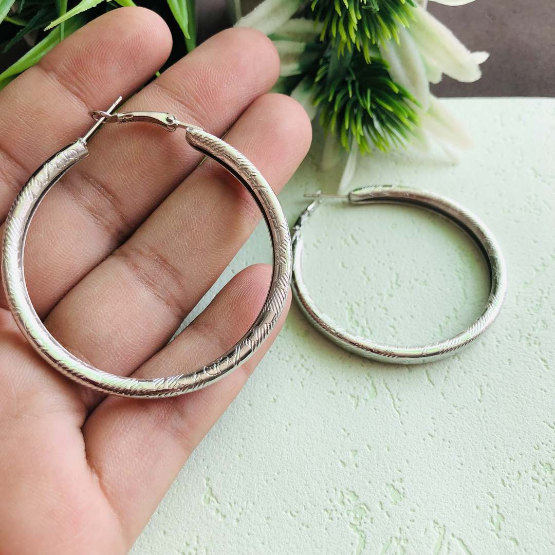 LARQ JEWELS Stainless Steel Curb Chain Hoop Earrings for Women silver