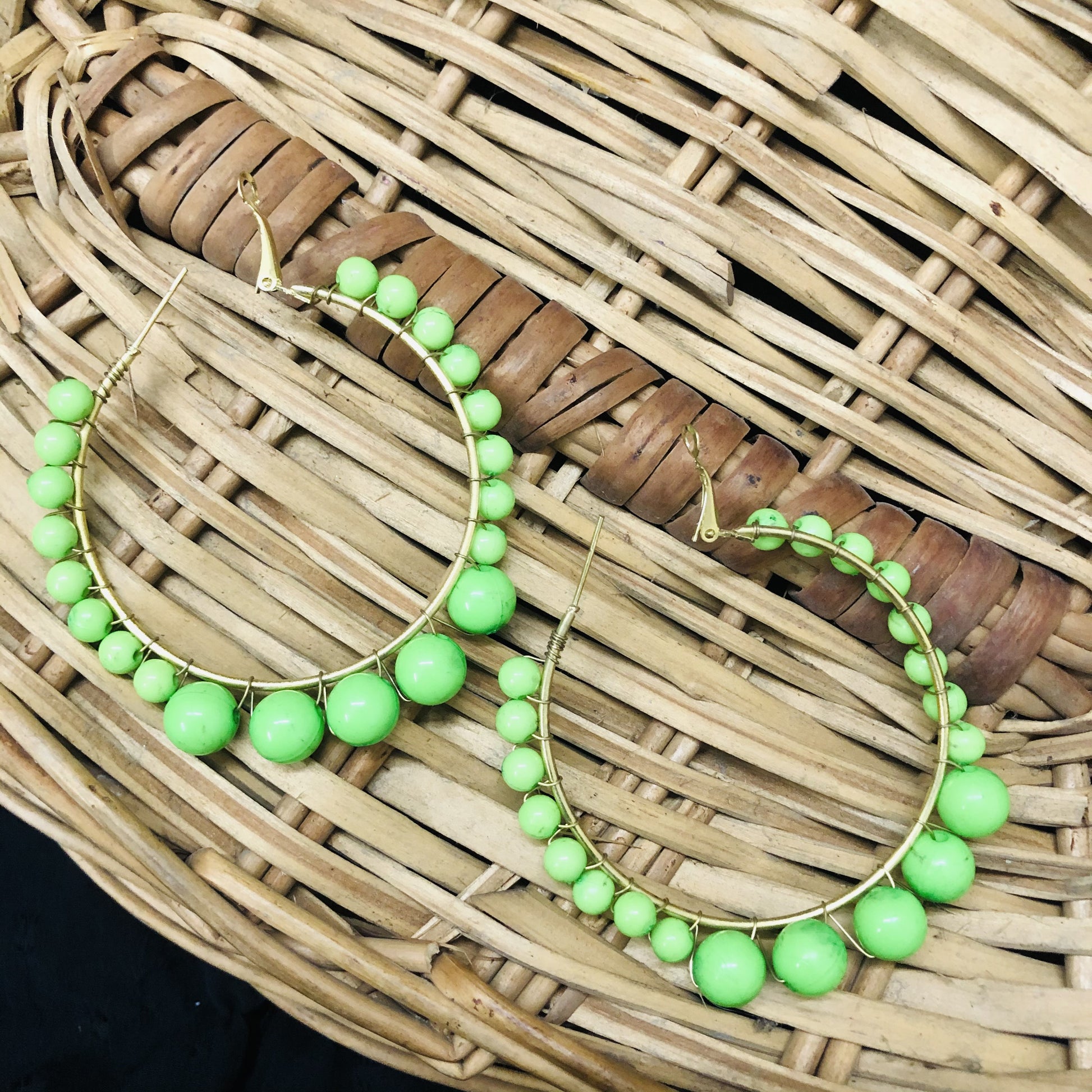LARQ JEWELS Women's Beaded Hoop Earrings GREEN
