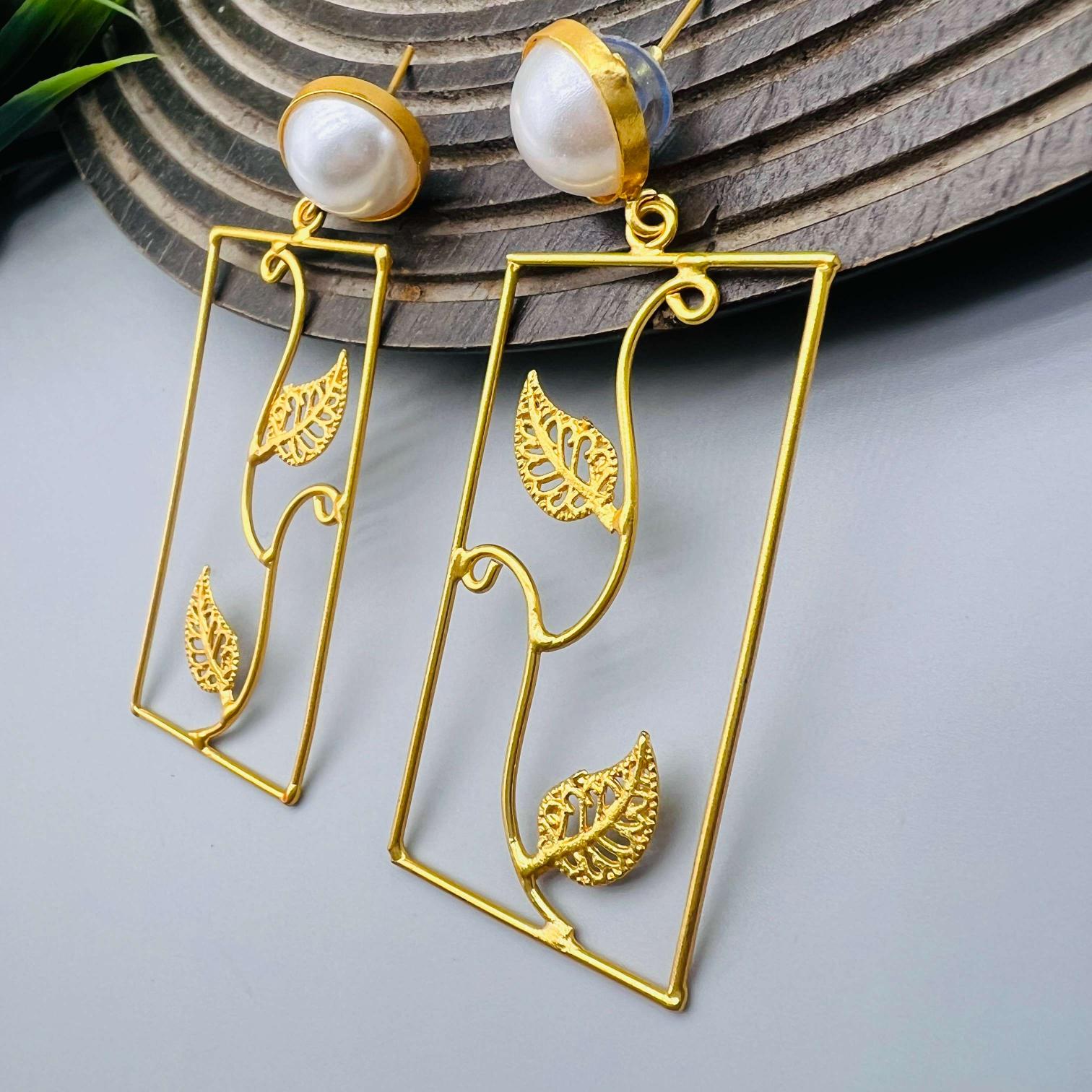 Luxe Leaf & Pearl Drop Brass Statement Earrings