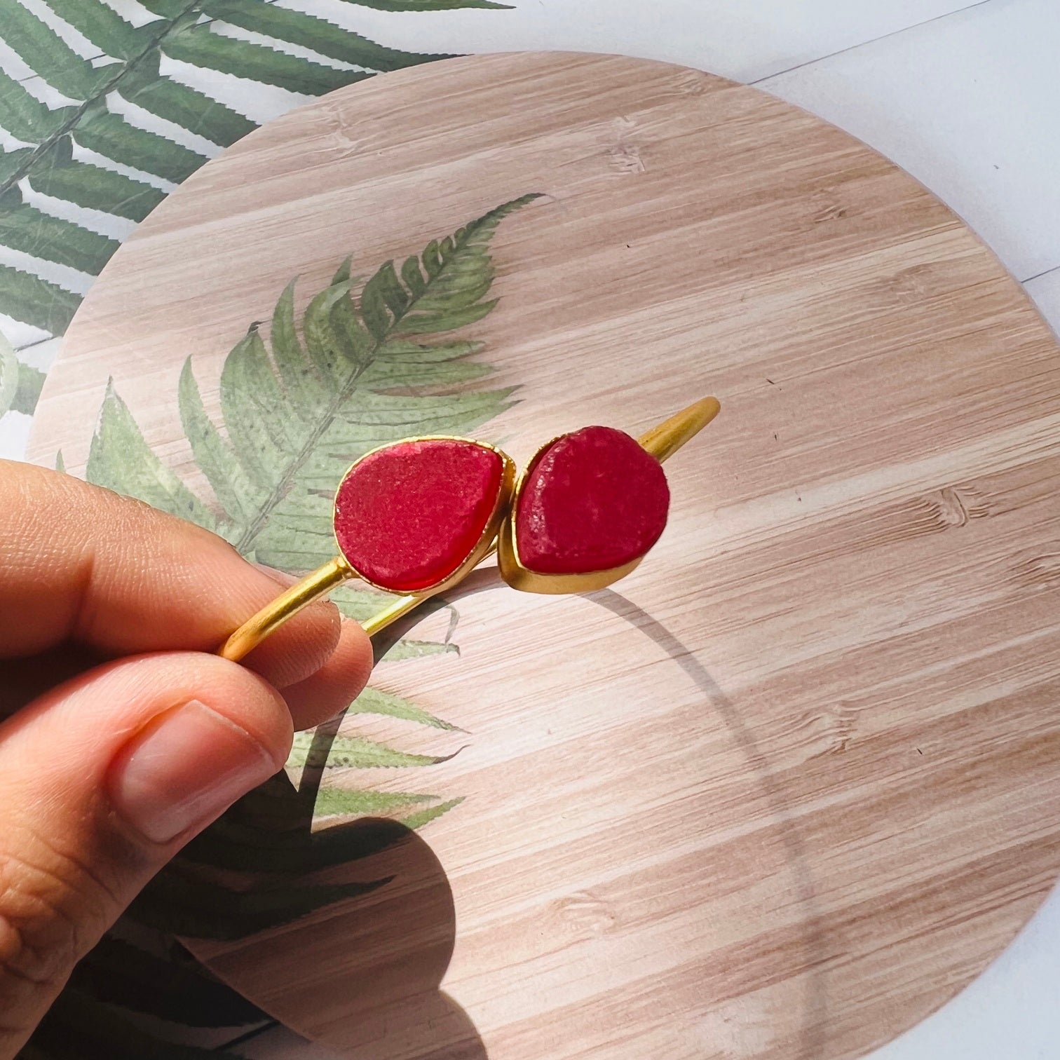 Brass Matt Golden Red Stone Bracelet