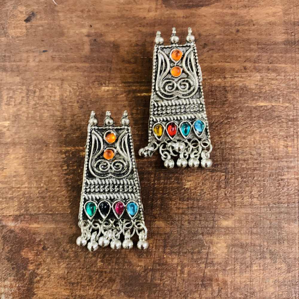 LARQ JEWELS Multi Colored Stone Silver Oxidized Necklace