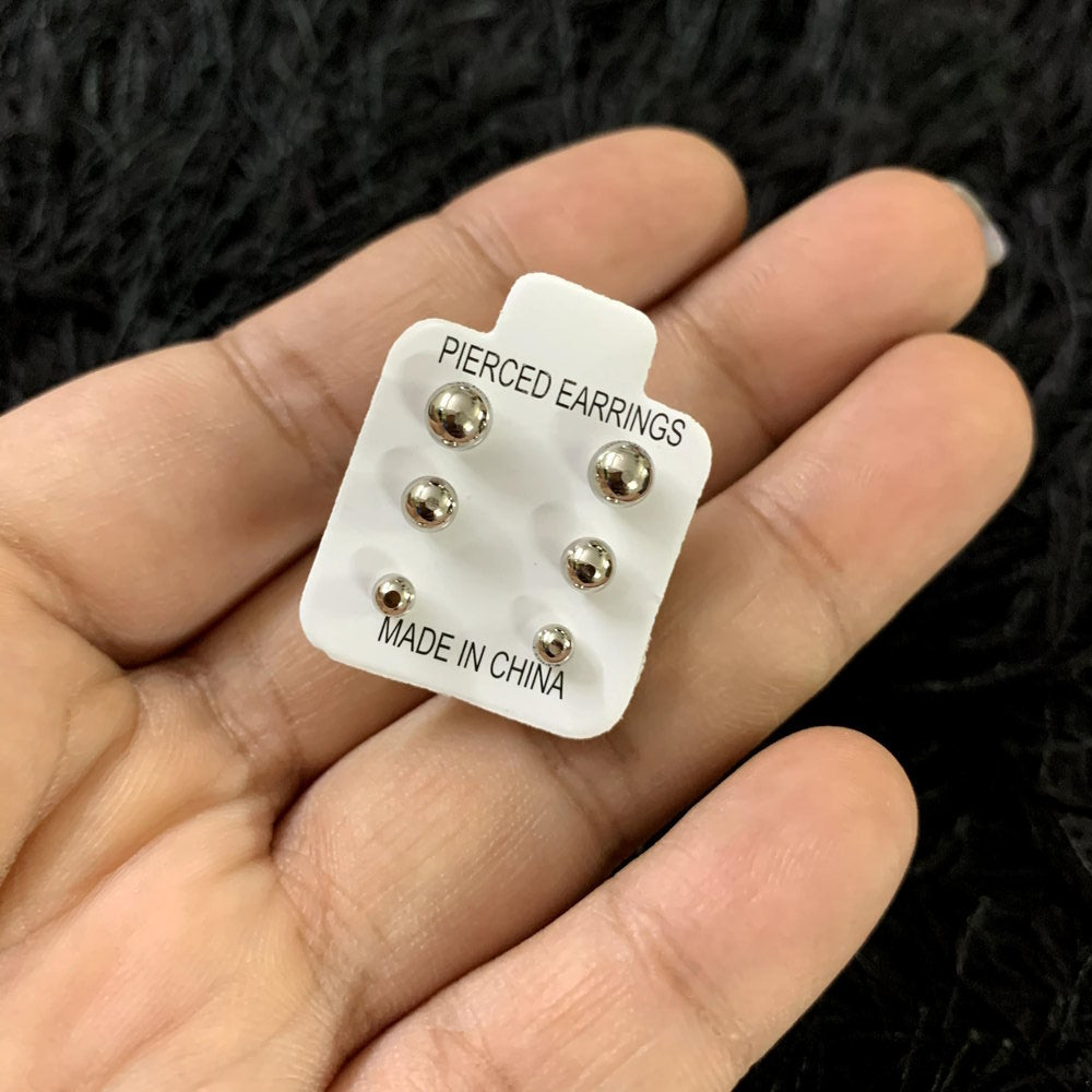 Set of 3 pairs of Black Metal Stainless Steel Stud Earrings